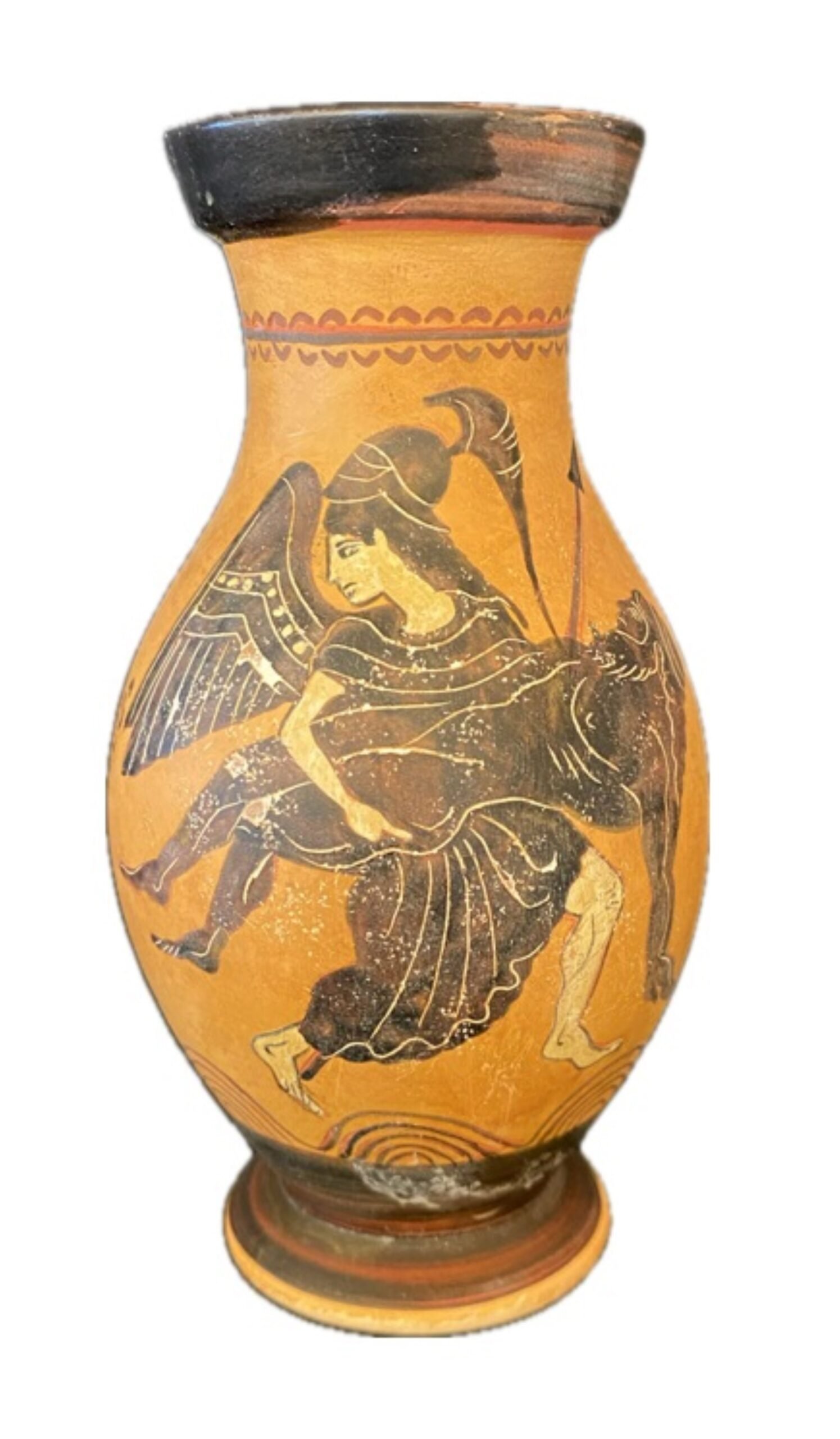 Athenian black figure Olpe vase.