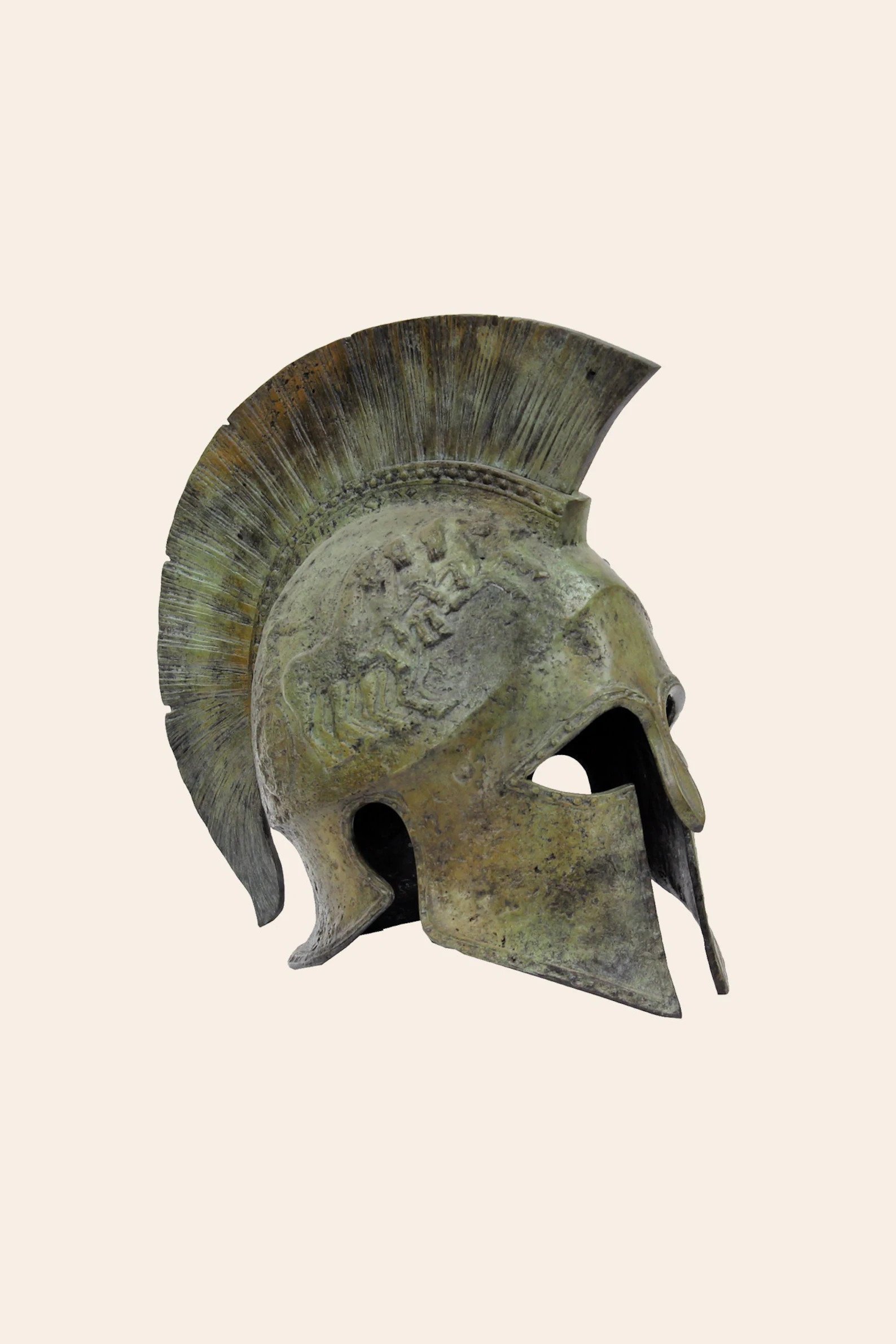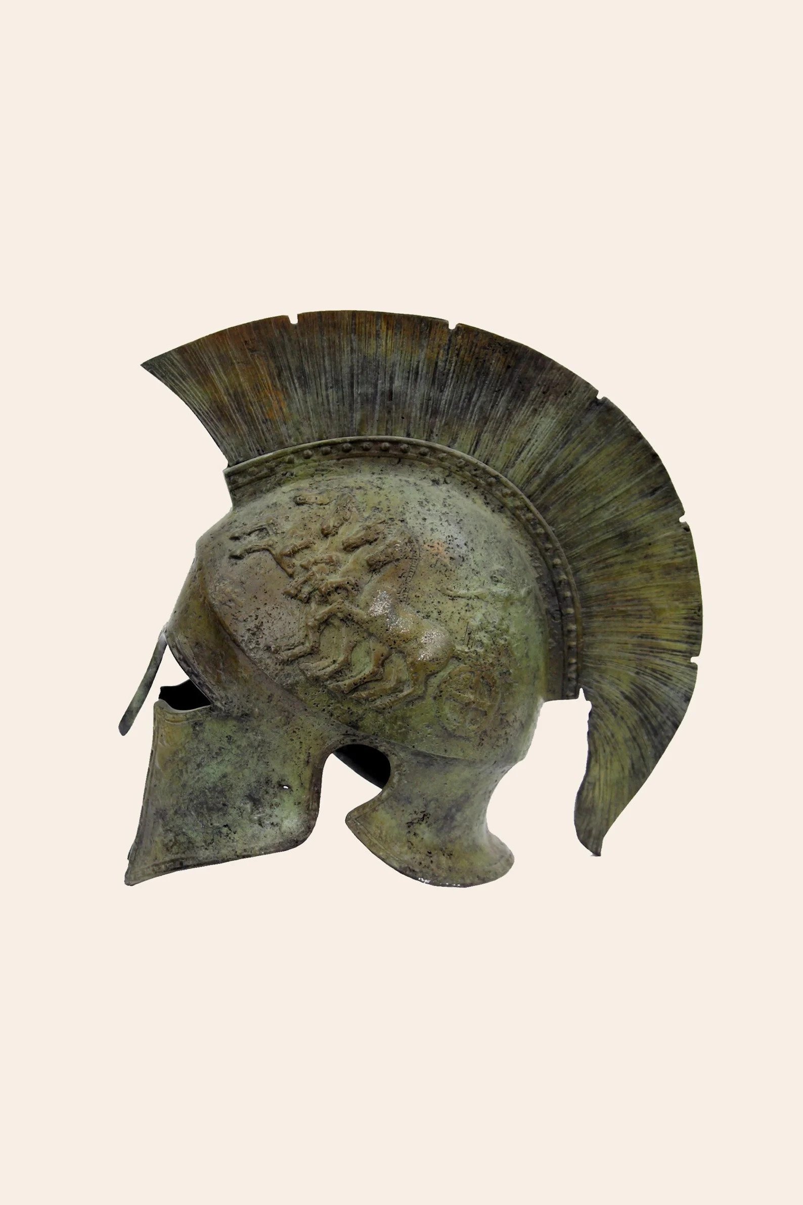 The helmets in Ancient Greece, were made of wood and metal. They first appeared in the 8th century BC and gradually evolved until the middle of the 5th century BC.Their top was decorated with a crest from horse tail.