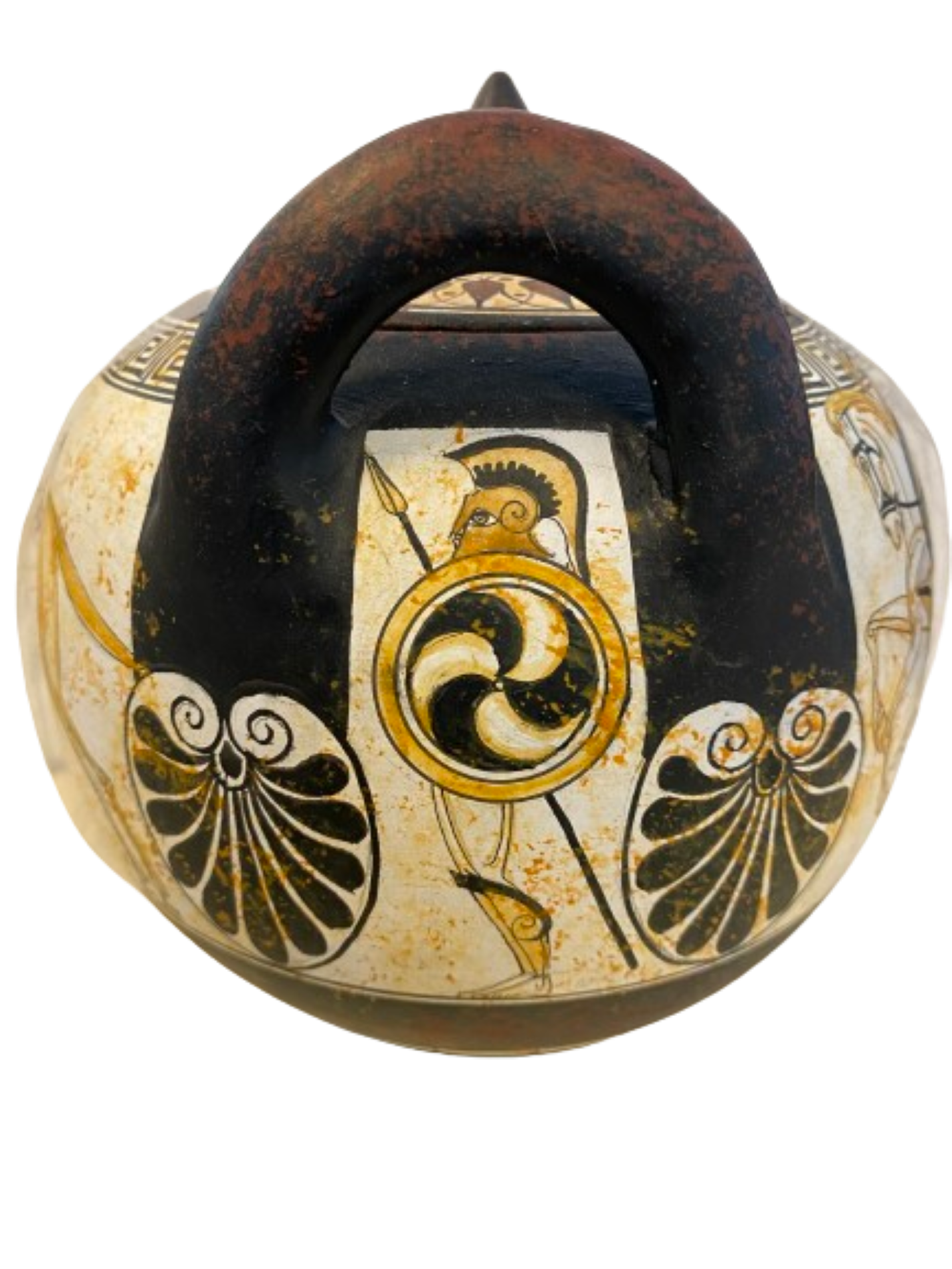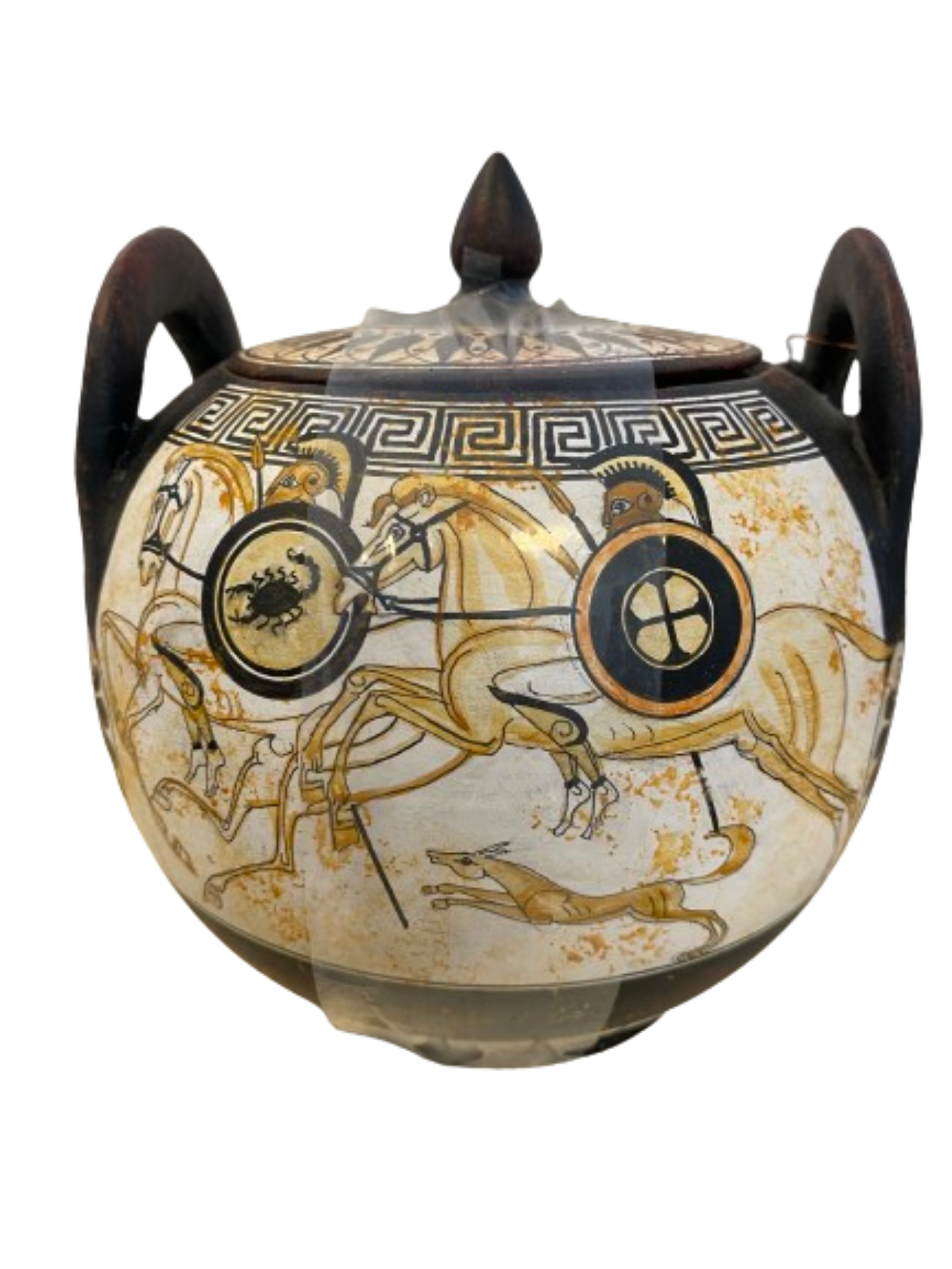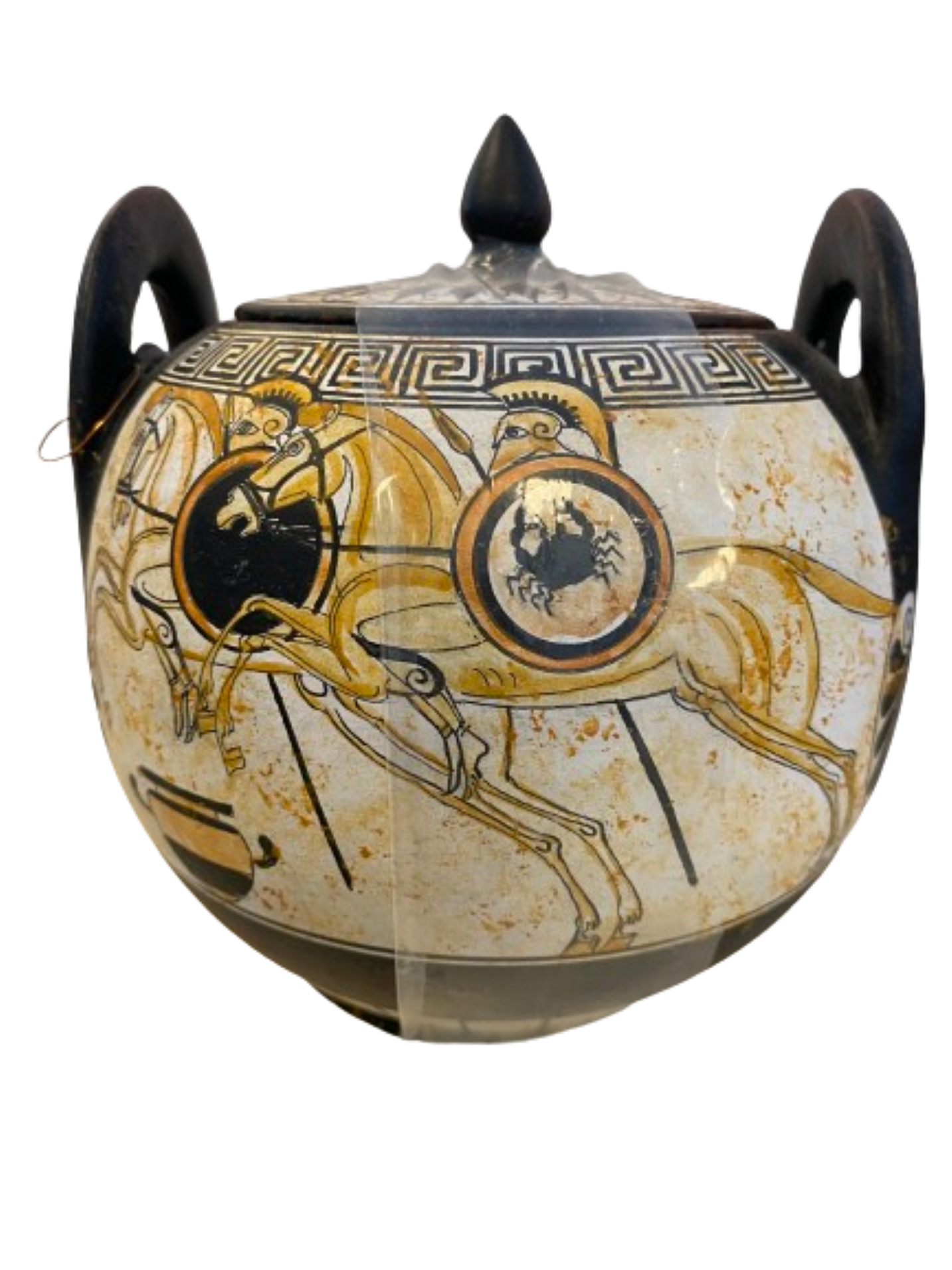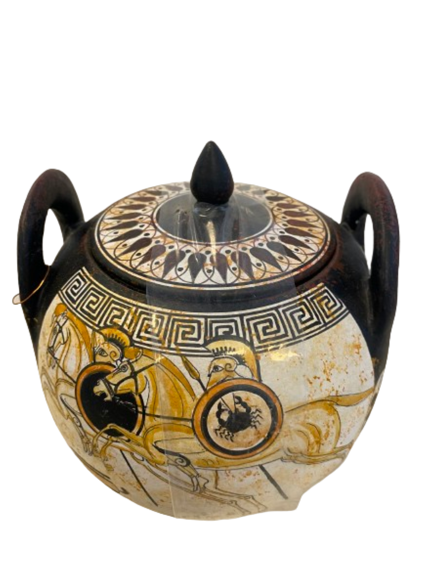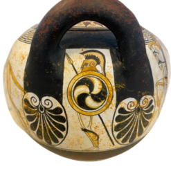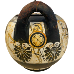 Athenian white figure pyxis vase.