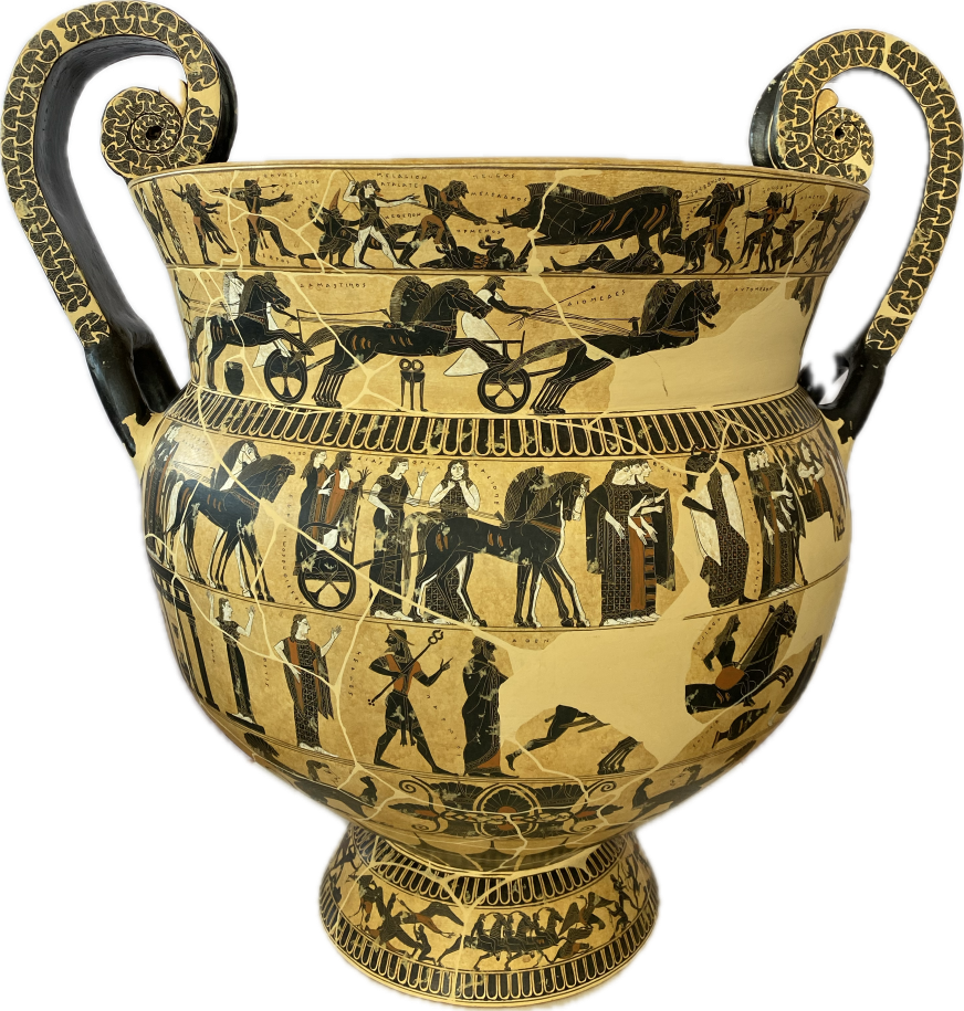 The vase is signed by Ergotimos (potter) and Kleitias (painter)