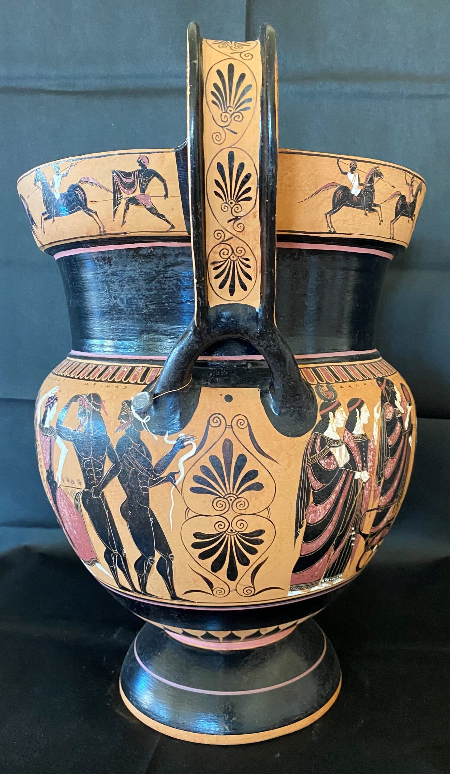 Attic black figure volute krater vase.