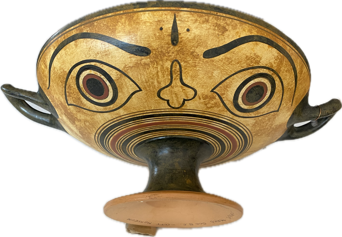Eye-Cups refers to Ancient Greek pottery that features a pair of eyes on the outside of the cup. These were often used at Symposia (Symposium singular), ancient, elite male gatherings where the guests would drink, dine, play and have scholarly debates.