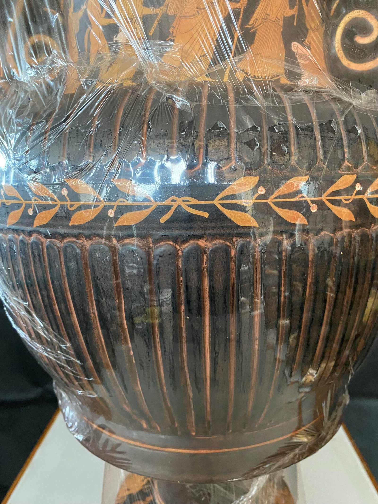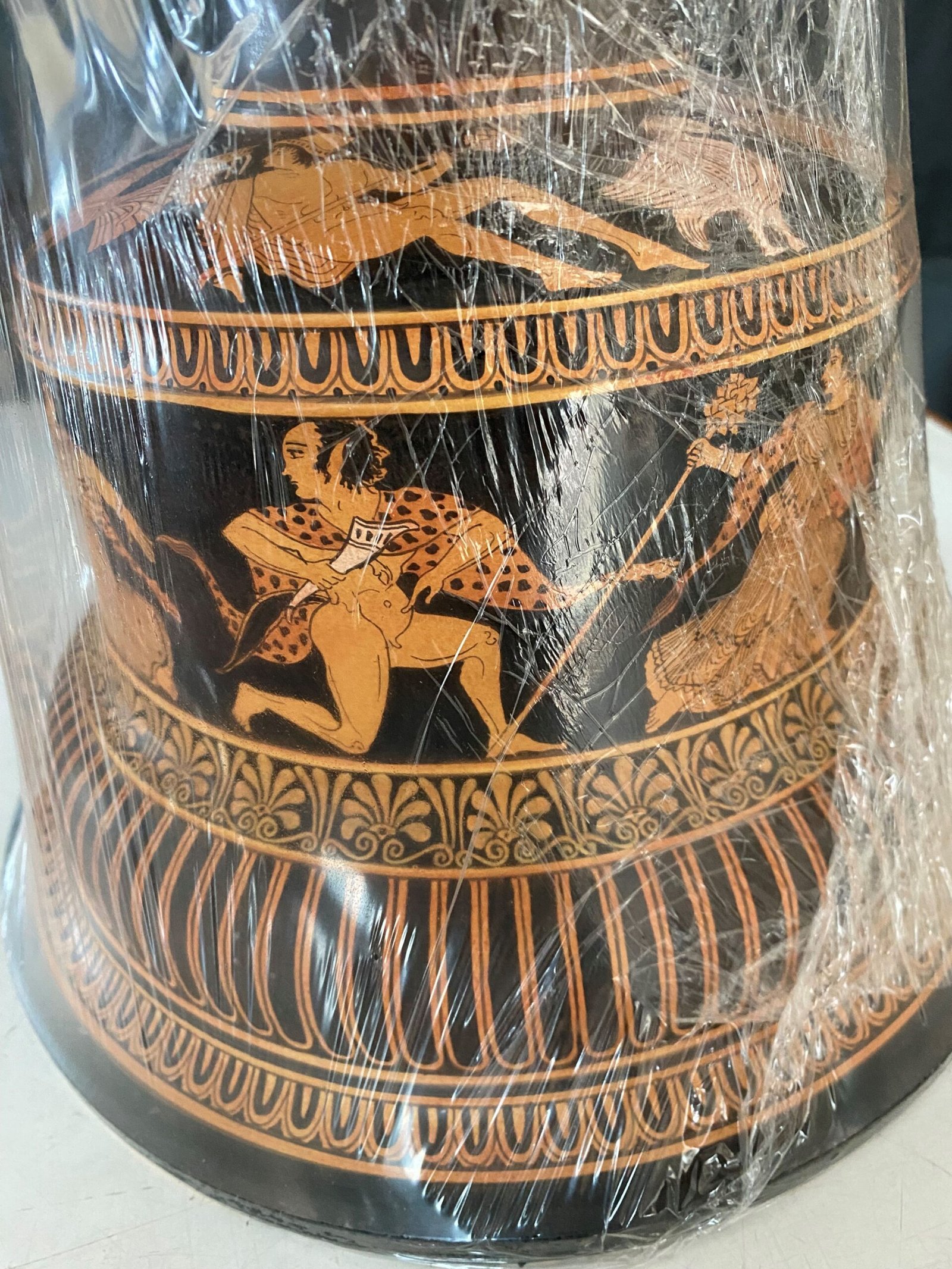 The decoration with the anthems on both the upper and lower zones of the vase gives it a majestic style, such that it implies the high position that its owner held in ancient society.