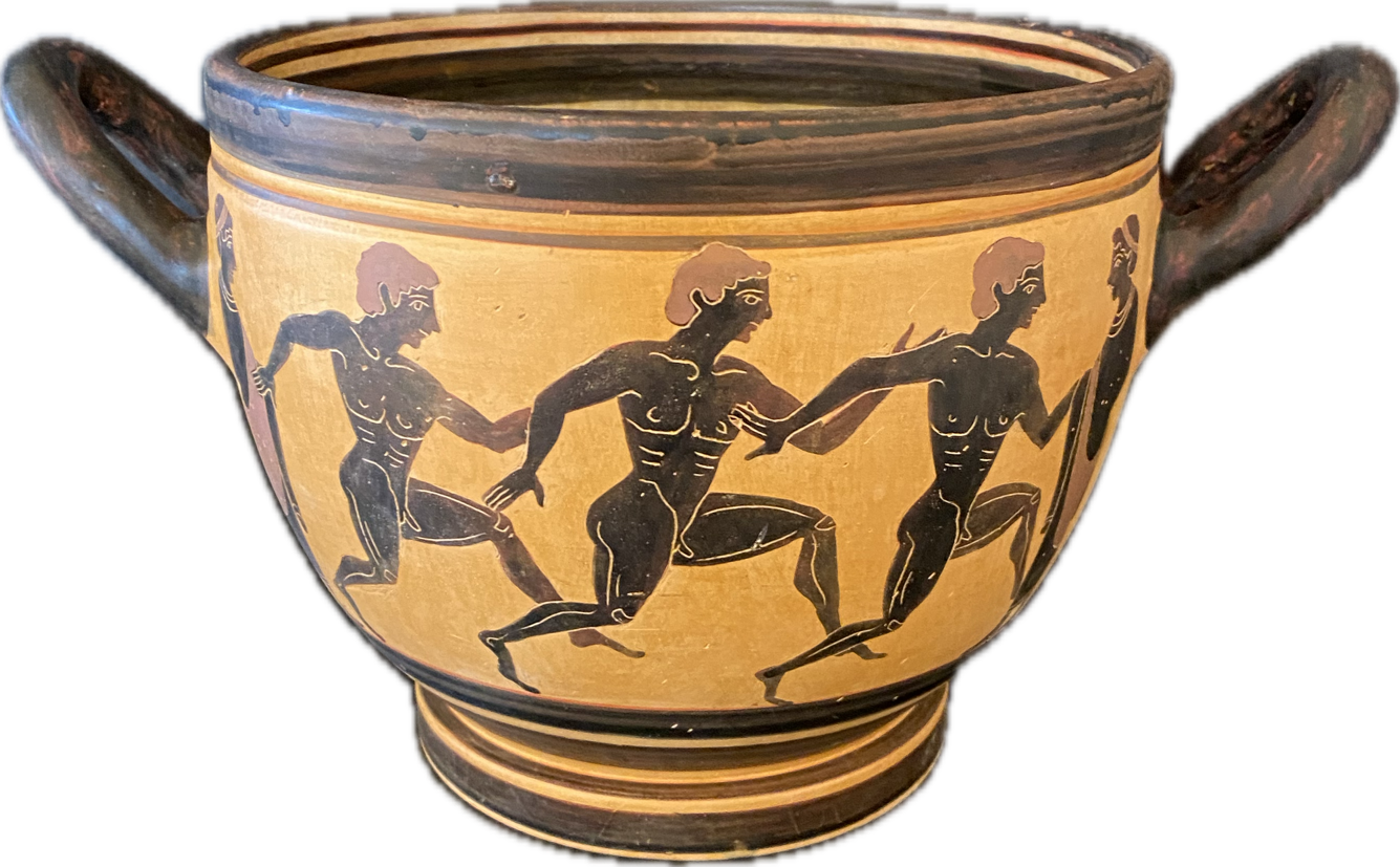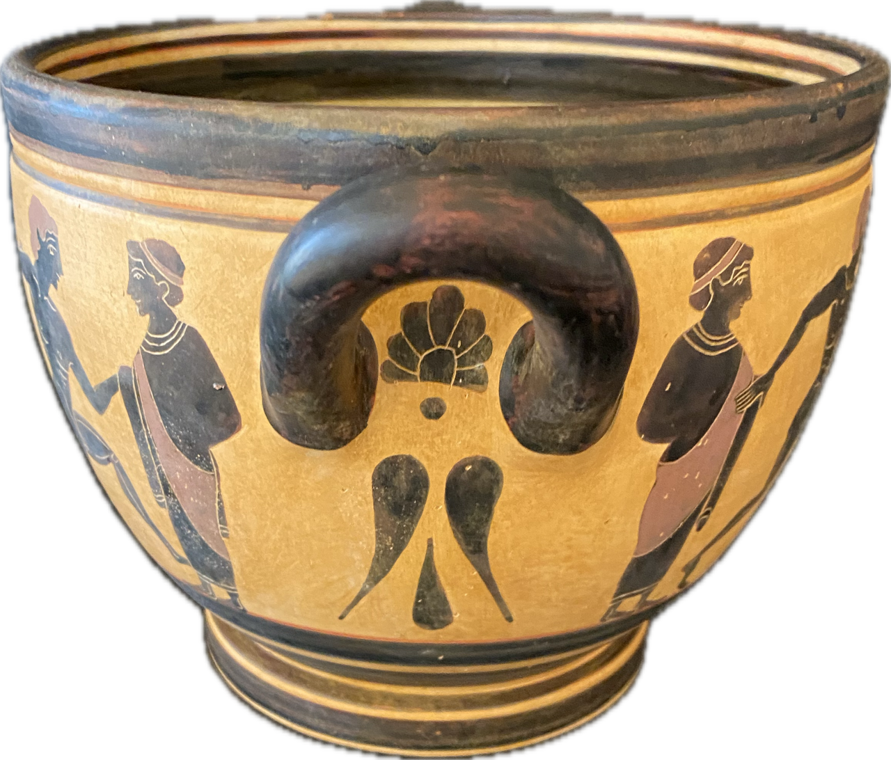 *The skyphos, was a type of ancient Greek vase, a kind of wide cup with two handles. It was one of the most popular forms of cup in ancient Greece.