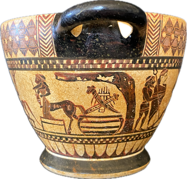 Corinthian black – figure skyphos .