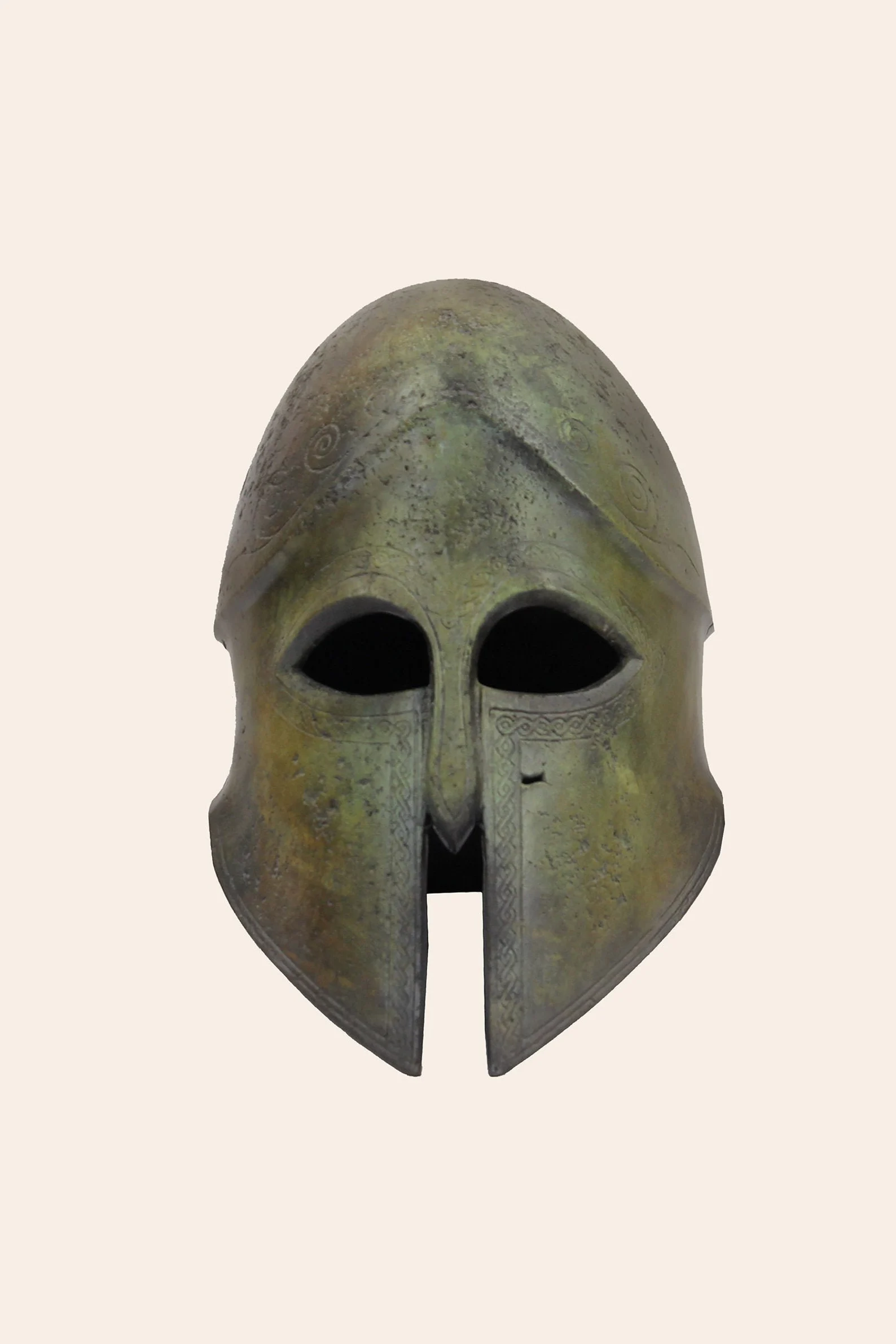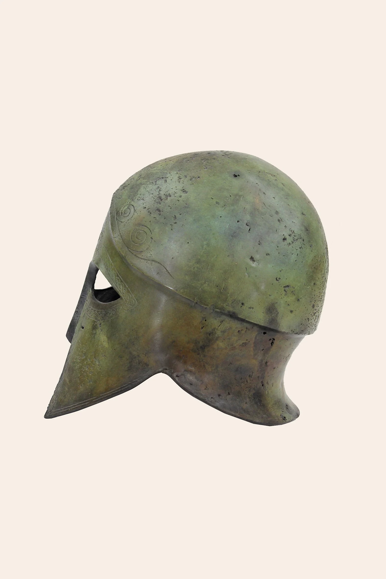 The helmets in Ancient Greece, were made of wood and metal. They first appeared in the 8th century BC and gradually evolved until the middle of the 5th century BC.Their top was decorated with a crest from horse tail.