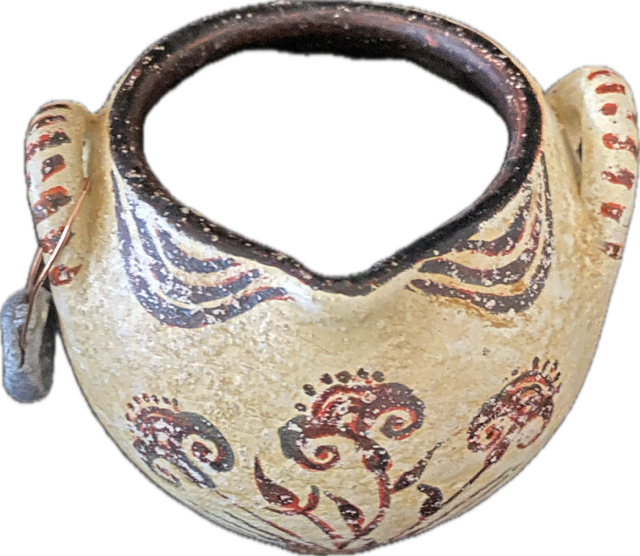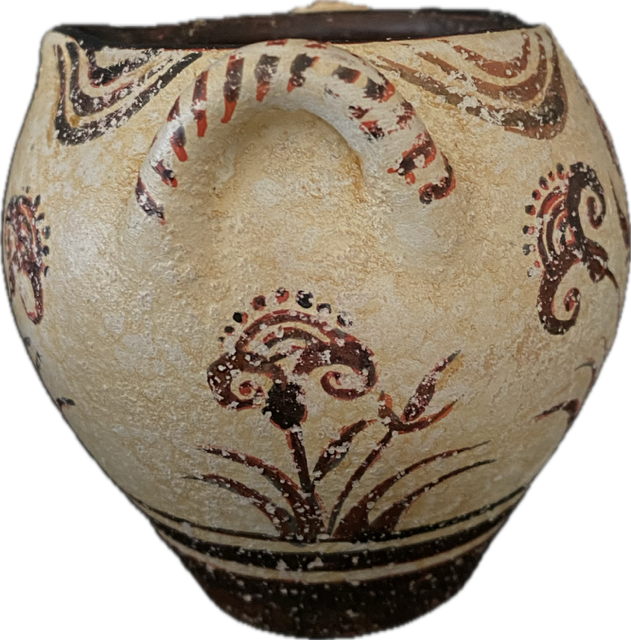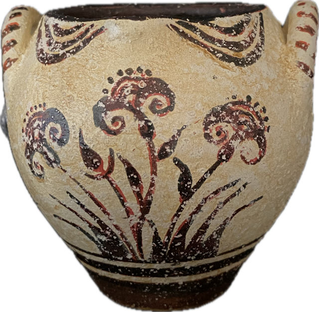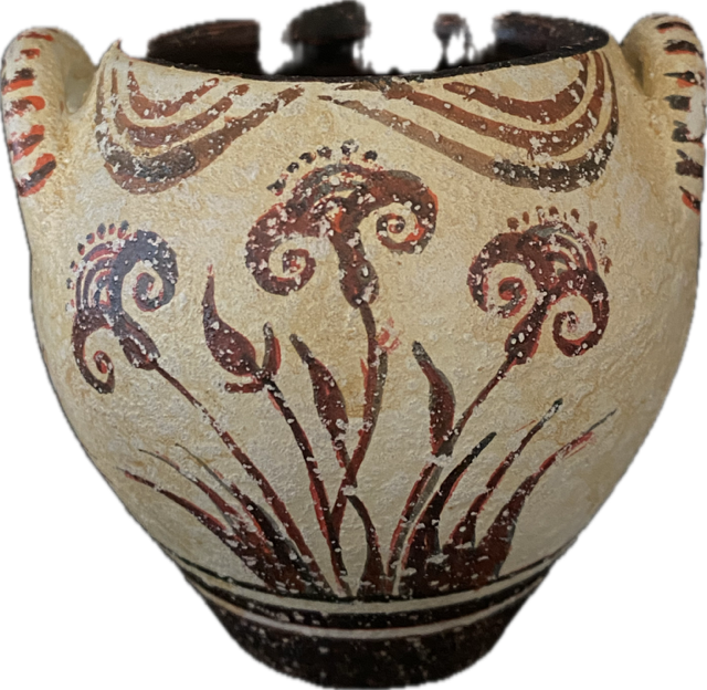 Minoan vase decorated with smiling papyrus.