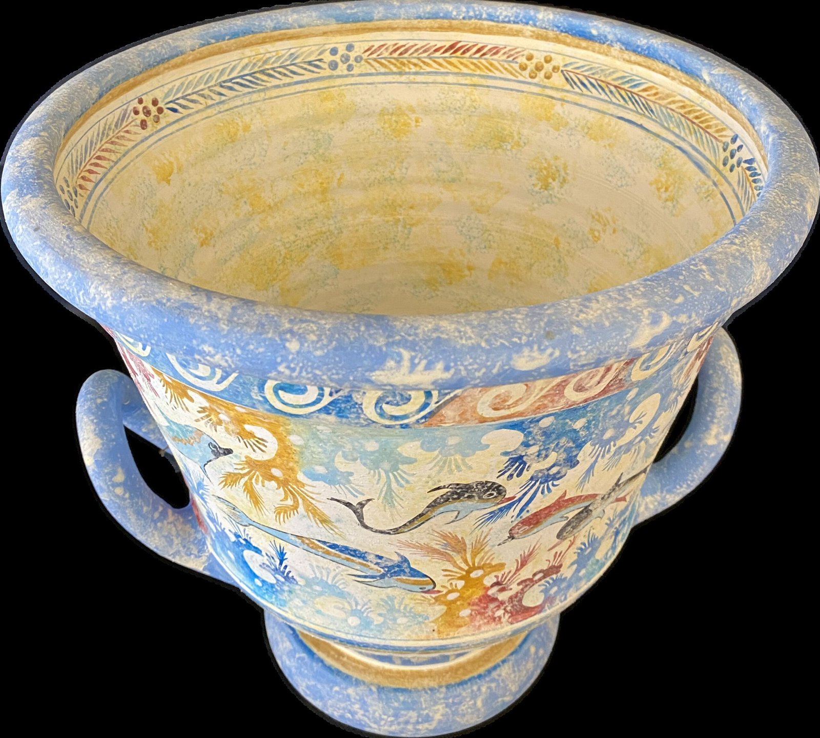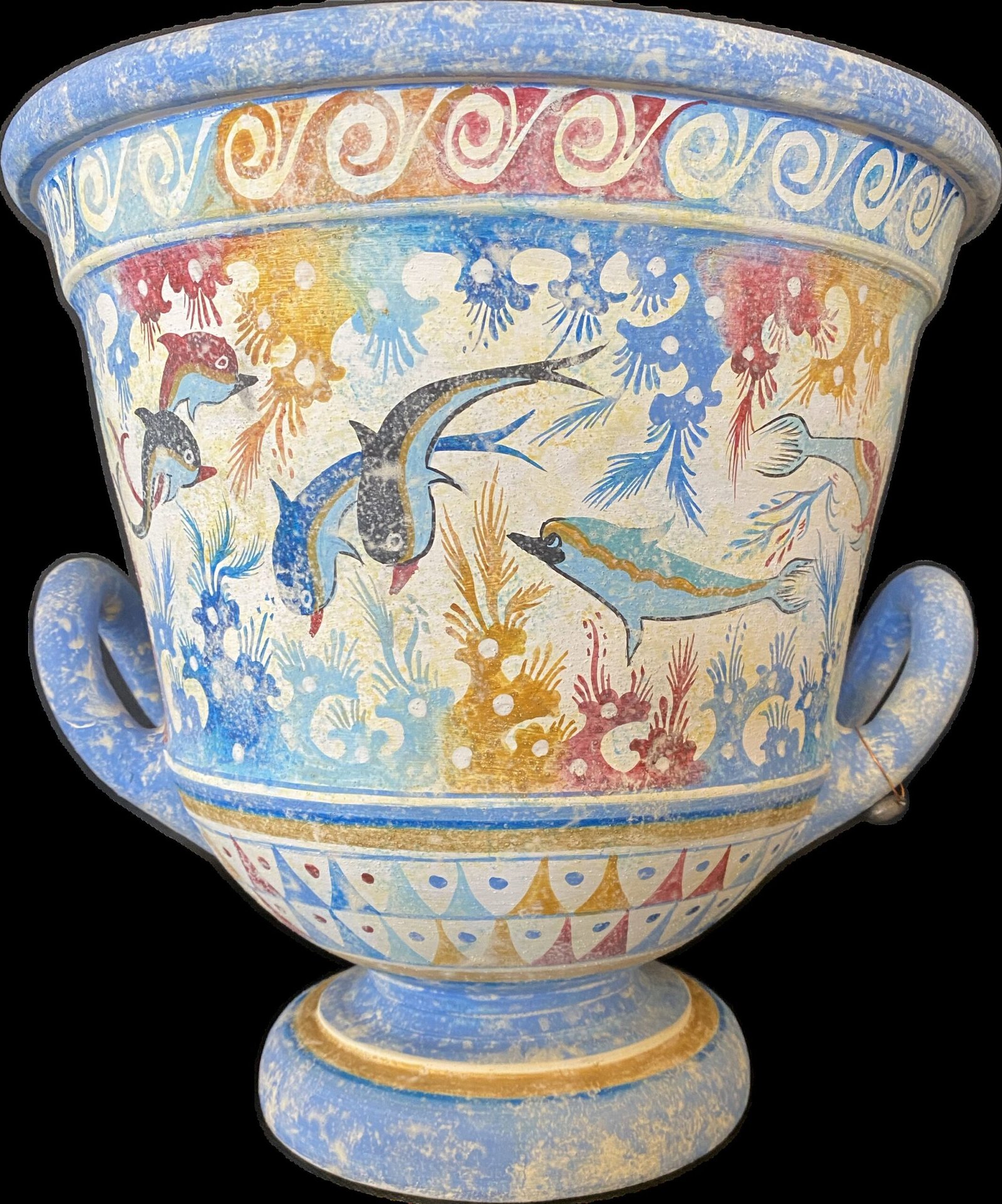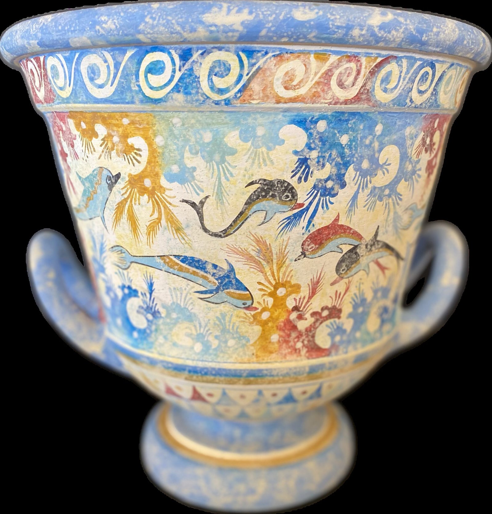 *A krater or crater (Greek: κρατήρ , kratēr, lit. ’mixing vessel’) was a large two-handled type of vase in Ancient Greek Pottery, and metalwork, mostly used for the mixing of wine with water.